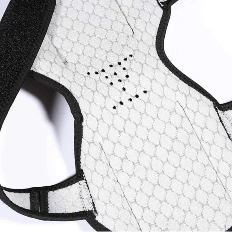 Stabilizátor má prodyšnou síťovinu a protiskluzový materiál. Nastavení délky suchého zipu usnadňuje oblékání a umožňuje nošení uvnitř nebo vně oděvu.