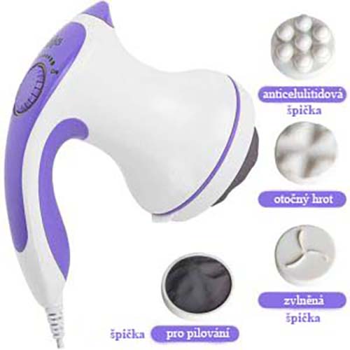 Relaxační a masážní přístroj pomáhá relaxovat a uvolňovat tělo, a zpevňovat na hýždích, pažich, bocích a stehnech, břichu, bez jakýchkoli namáhavých cvičení. Rotační pohyb masážní špičky zajišťuje účinnost zařízení, které dělá více než 2500 otáček za minutu. Masáž tak zasahuje hluboko do vnitřních vrstev kůže a intenzivně stimuluje odolné tukové buňky. Chcete-li získat tvarovanou postavu a cítit se dobře, použijte masážní přístroj každý den po dobu 10 minut.